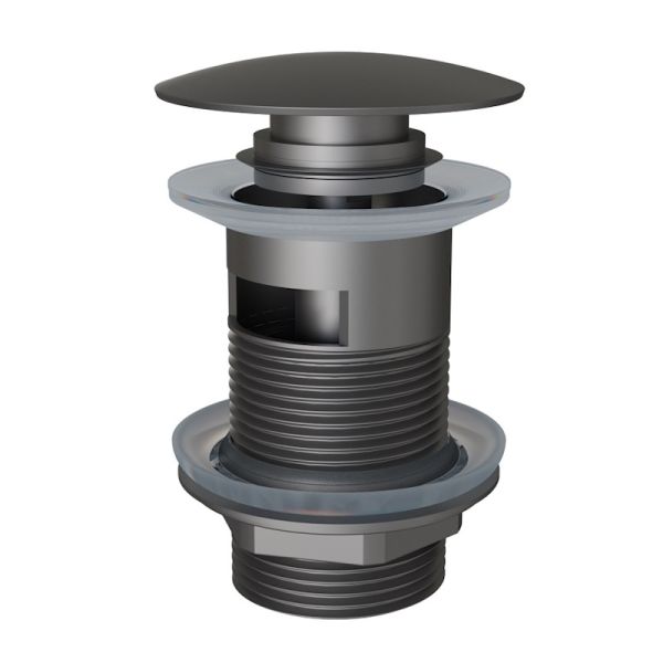 Донный клапан нажимной с переливом в цвете вороненой стали. Прочный механизм CLICK-CLACK предотвращает засоры и гарантирует равномерный уход воды. Матовая поверхность проста в уходе и устойчива к отпечаткам. Решение для тех, кто устал постоянно чистить ванну и переживать из-за протечек.