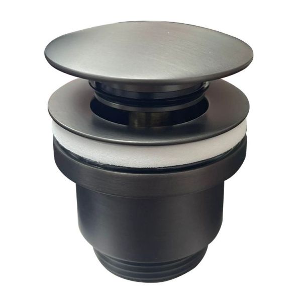 Донный клапан Haiba HB64-3.Данная модель имеет металлический корпус.Крышка пепельного цвета, выполнена из нержавеющей стали.Силиконовые прокладки обеспечивают плотное прилегание донного клапана к посадочному месту раковины.Без перелива.