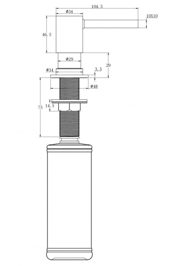 - Для того, чтобы установить дозатор, не понадобится много времени. Он легко встраивается в мойку или столешницу при помощи монтажной трубки и прижимной гайки.