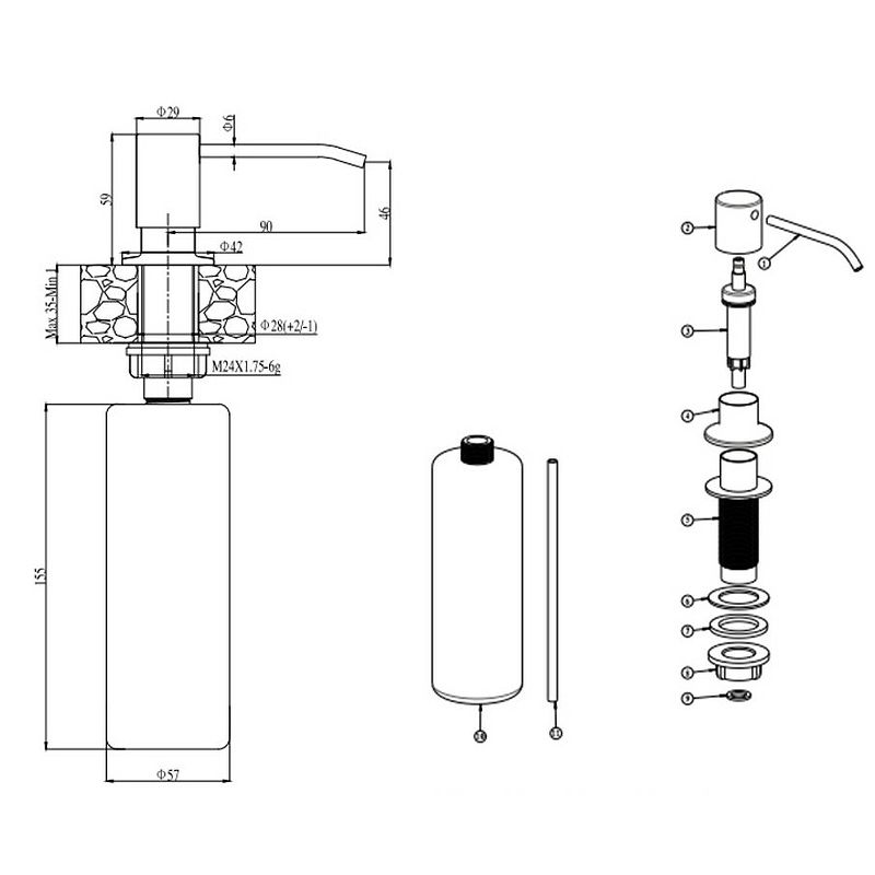Дозатор для моющего средства Alveus Callas Chr 1129078 ХромВам надоели бесконечные разводы и следы от бутылочек с жидким мылом и моющим средством? Тогда встраиваемый дозатор от Alveus - это то, что Вам нужно. Практичный, современный дизайн. Легко заправляется сверху; диаметр отверстия под дозатор 28-35 мм; вместительная колба; надежный механизм крепления. Благородный полуматовый оттенок дозаторов Monarch Collection идеально сочетается с мойкой в PVD покрытии.