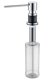 Дозатор для кухни и ванной, артикул D003-418Дозатор для кухни или ванной, встраиваемый, объемом 350 мл, матовая поверхность, изготовлен из латуни и пластика.