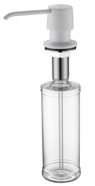 Дозатор для кухни и ванной, артикул D001-431Дозатор для кухни или ванной, встраиваемый, объемом 350 мл, матовая поверхность, изготовлен из латуни и пластика.