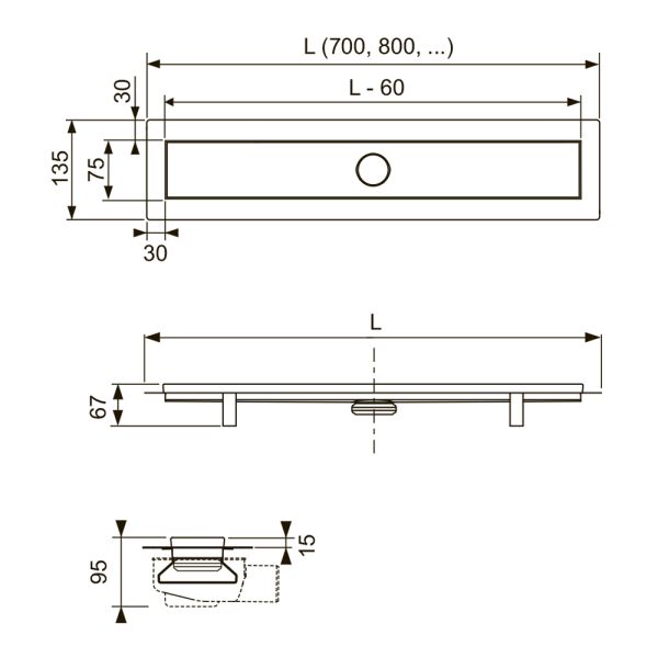 • дренажный канал из нержавеющей стали;