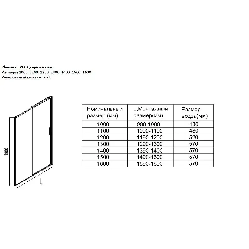• Исполнения полотна двери: прозрачное стекло, толщиной 6 мм.