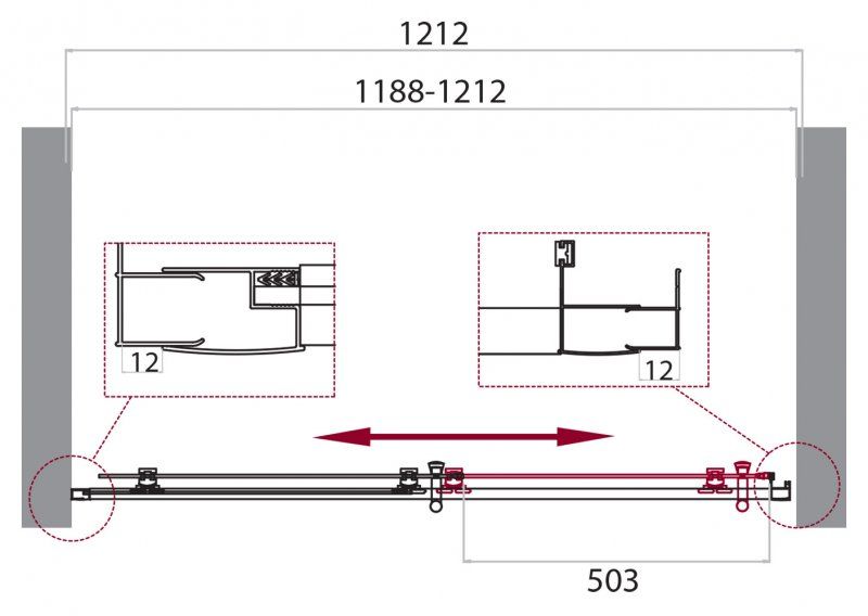 Регулировка ширины: предусмотрена за счет боковых профилей