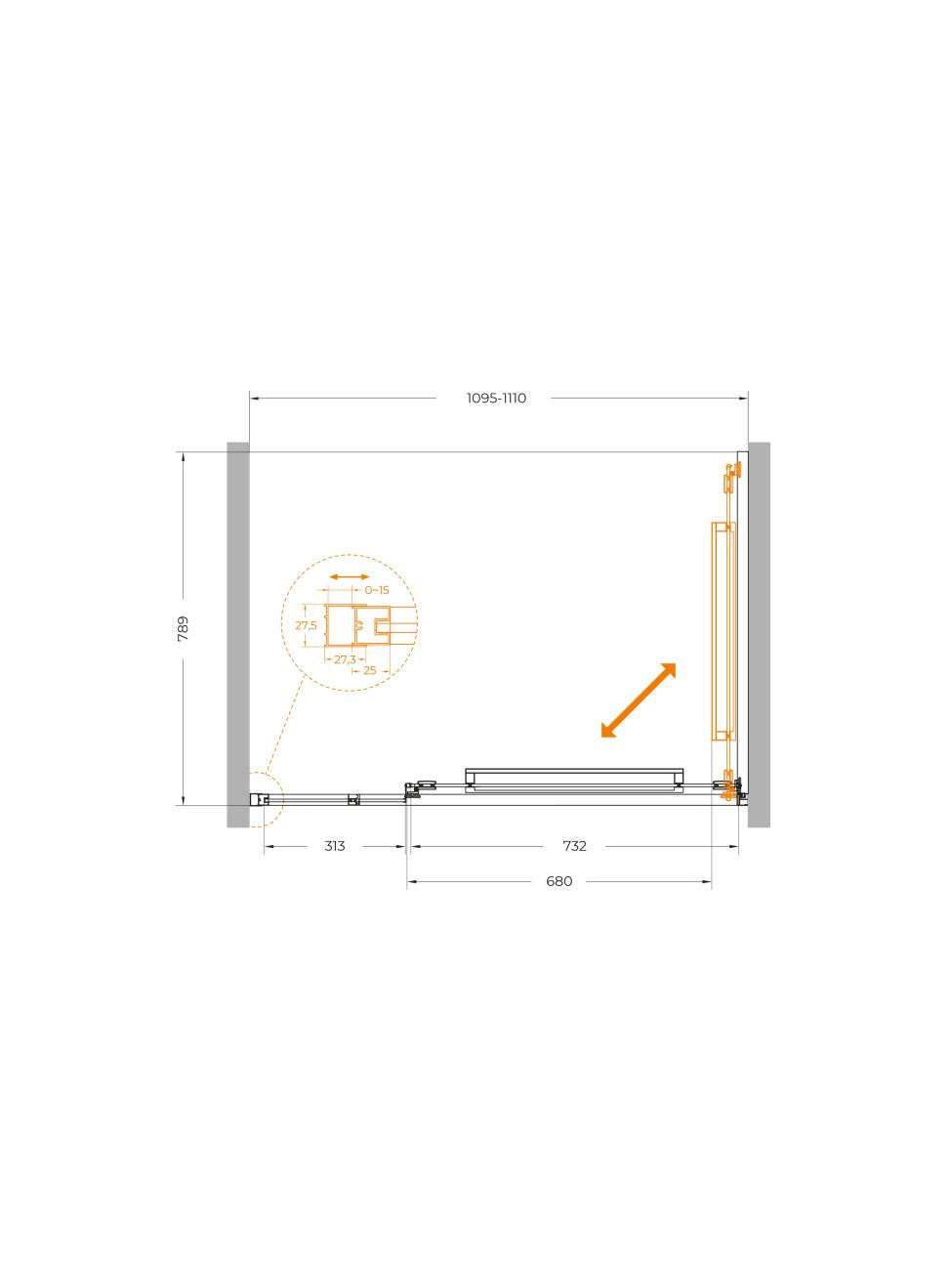 Душевая дверь CEZARES LUX-B-FS-11-110-C-CR хром