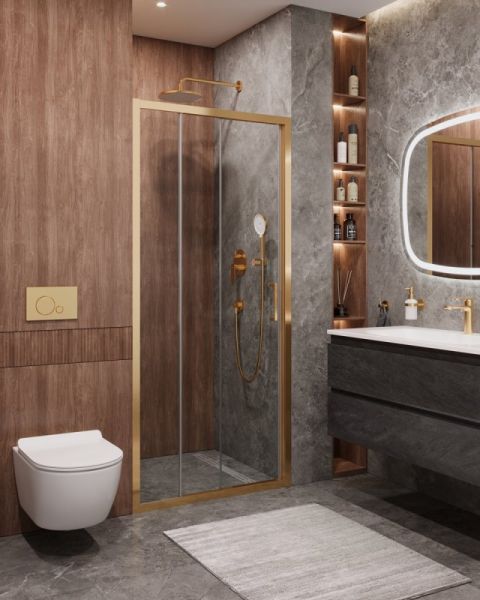 Душевая дверь CEZARES MOLVENO-BF-3-100-C-BORO-IV брашированное золото