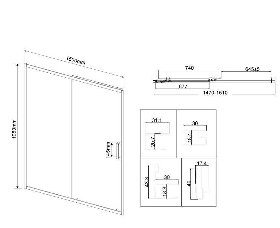 Душевая дверь Vincea City VDS-5CT150MT, 1500, хром, стекло текстурное