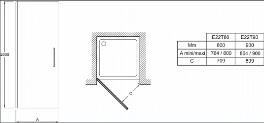 Душевая дверь Jacob Delafon CONTRA E22T90-GA 90*200
