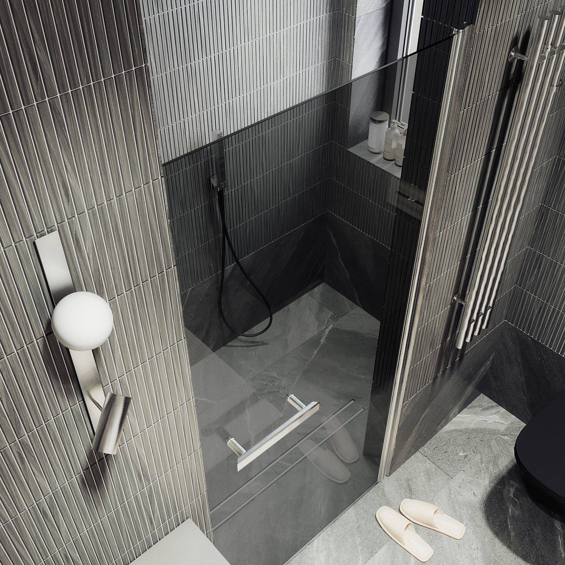 Стеклянная душевая дверь на монопетле является стильным и функциональным аксессуаром для ванной комнаты. Монопетля обеспечивает плавное и бесшумное открывание и закрывание двери. Закаленное стекло, из которого изготовлена дверь, обладает высокой прочностью и устойчивостью к механическим повреждениям и воздействию влаги. Закаленное стекло, цвет графит, толщина 8 мм 1950х745 мм - 1 шт.