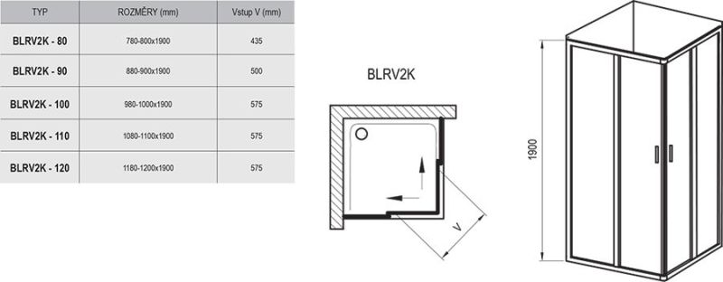 Создайте красивый квадратный или прямоугольный душевой уголок, исходя лишь из Ваших пожеланий, с помощью комбинации BLRV2K разных размеров.