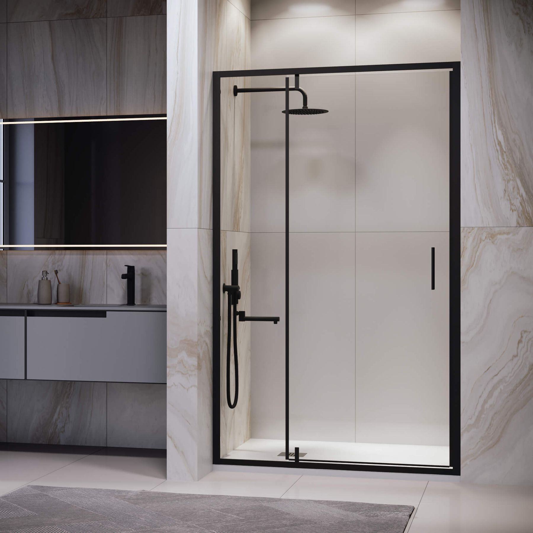 Элегантные стеклянные двери с пристенными профилями придают ванной комнате изысканность и строг... Подробнее