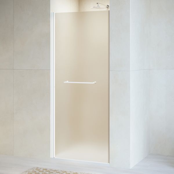 Душевая дверь распашная с маятниковой петлей (открытие только наружу). Маятниковые петли с функцией подъема двери. В комплекте нижняя пороговая планка. Стальная ручка - полотенцедержатель. Трап или поддон приобретается отдельно.