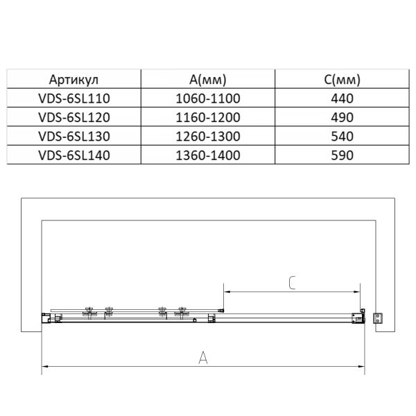 Душевая дверь Vincea Slim 8mm VDS-6SL110CLB, 1100, черный, стекло прозрачное