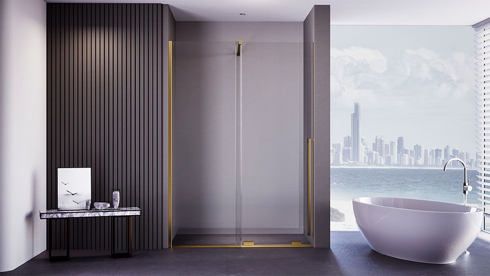 Душевая дверь Veconi Premium Trento PTDW-50G, 1200x2000, брашированное золото, стекло прозрачное купить