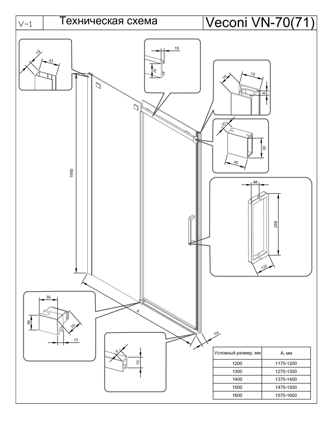 Душевая дверь Veconi Vianno VN-70CH, 1200x1950, хром, стекло прозрачное купить
