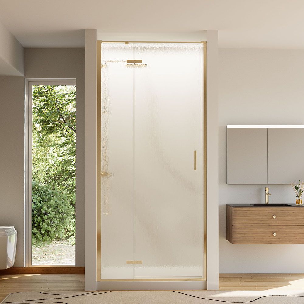 Душевая дверь Veconi Vianno VN-73RG/L, 800x1950, Золото брашинг, стекло дождь купить