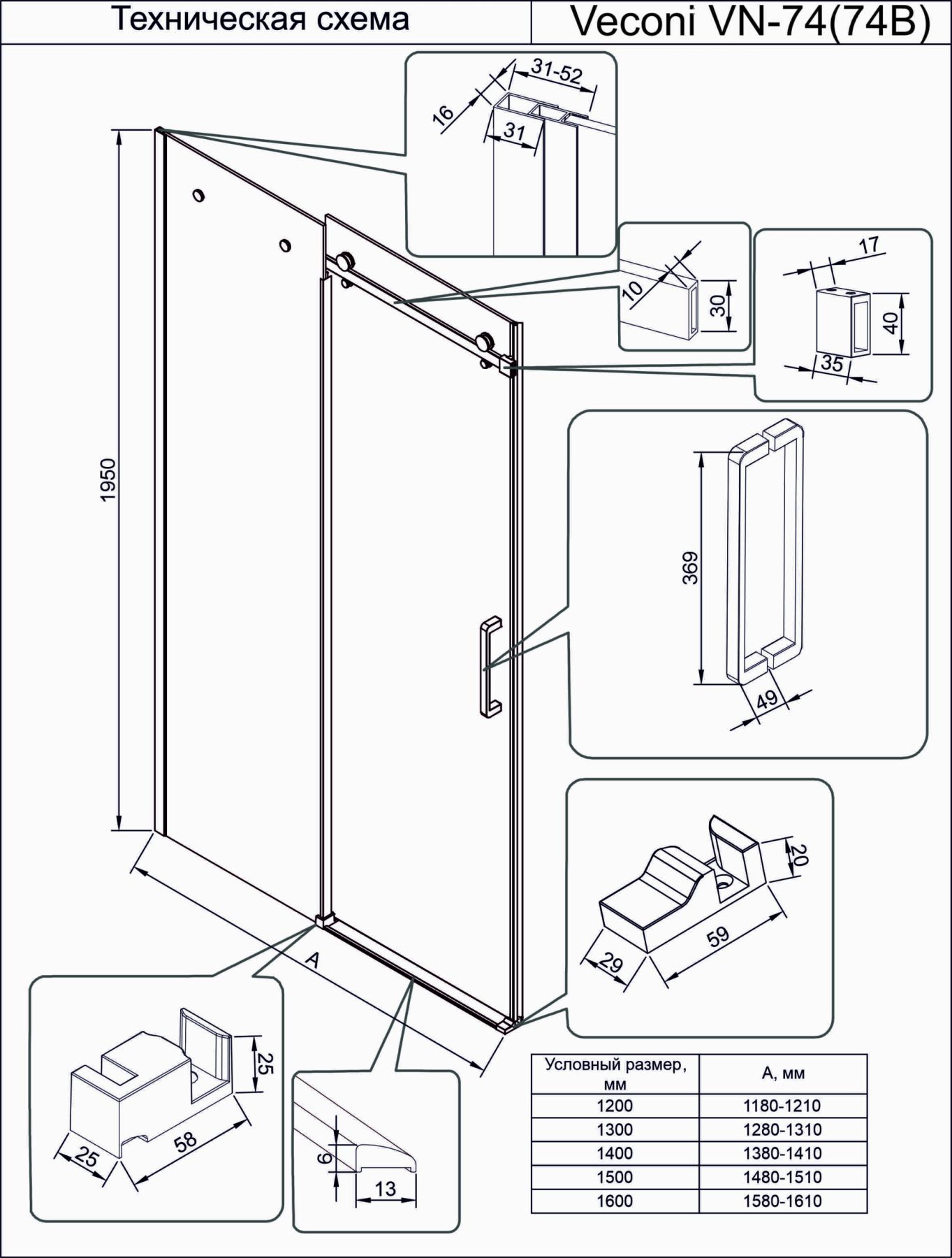Душевая дверь Veconi Vianno VN-74, 1200x1950, хром, стекло прозрачное купить