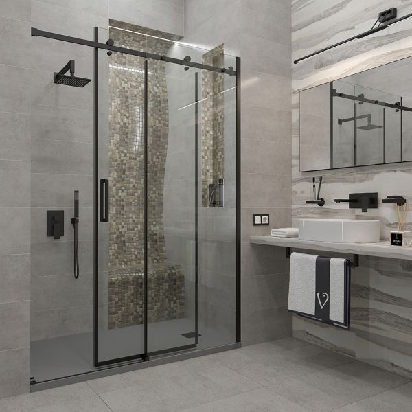 Душевая дверь Veconi Vianno VN-74B, 1500x1950, черный, стекло прозрачное купить