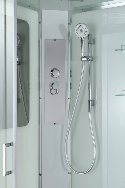 Стильная душевая кабина AvaCan сочетает в себе высокую функциональность, практичность и надежность. При изготовлении применяется безопасное закаленное стекло, надежно фиксируемое алюминиевым профилем. Профиль сделан из алюминия повышенной прочности. Сборка без силикона (увеличивает срок службы, защищает от протечек), внутренняя сборка (облегчает установку и ревизию; позволяет установить в ограниченном пространстве и обойтись без демонтажа других сантехнических приборов), смеситель резьбовой (без хомутов). Съемный экран поддона (позволяет осуществлять подключение и ревизию сифона).Двойные металлические ролики дверей (распределение нагрузки на два ролика, увеличивают срок службы). Душевая штанга(позволяет регулировать по высоте ручную лейку), ручная арома-лейка с витамином С (картридж в комплекте,есть возможность замены или удаления картриджа), полочки(из стекла, с ограничителем), сифон с гидрозатвором.