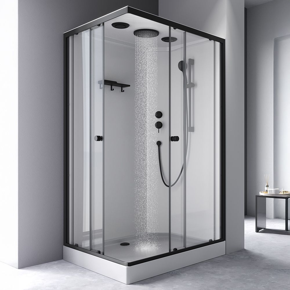 Одинарные ролики обеспечивают легкое и бесшумное открывание. Кабина оснащена 5-режимным ручным душем, стильным смесителем и компактной полкой, на которой разместится все необходимое. Герметичная конструкция защищает помещение от брызг воды.