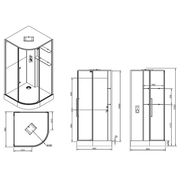 Материал боковых стенок: закаленное стекло, 5 мм.