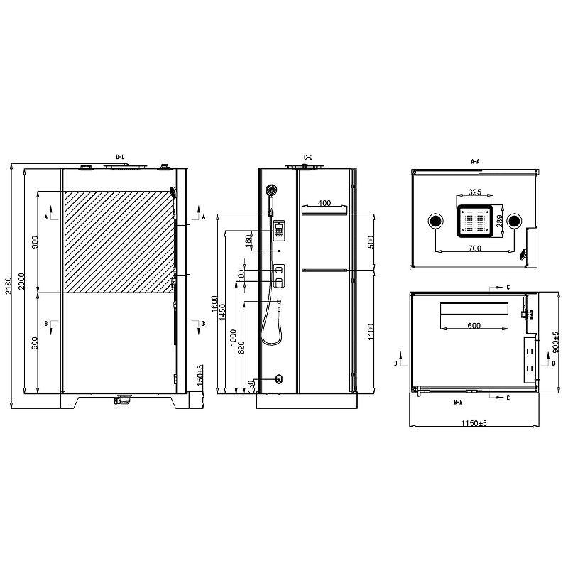 Размер (ШхВхД): 1150x2180x900 мм.