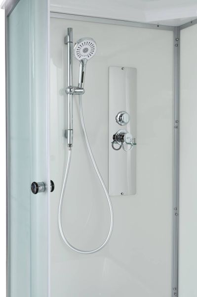 Стильная душевая кабина AvaCan D5080  сочетает в себе высокую функциональность, практичность и надежность. При изготовлении применяется безопасное закаленное стекло толщиной 4 мм (матовое), надежно фиксируемое алюминиевым профилем. Сборка без силикона (увеличивает срок службы), внутренняя сборка (облегчает установку и ревизию, позволяет установить душевую кабину в ограниченном пространстве),смеситель резьбовой (без хомутов), съемный экран поддона (позволяет осуществлять ревизию сифона), цвет профиля матовый хром. Двойные металлические ролики дверей (увеличивают срок службы).В комплекте : душевая штанга, полочка, тропический (верхний) душ, арома-лейка с витамином С (картридж съемный).
