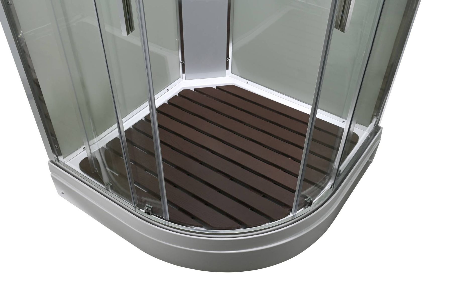 Стильная душевая кабина AvaCan EM2080T сочетает в себе высокую функциональность, практичность и надежность. При изготовлении применяется безопасное закаленное стекло толщиной 5 мм (прозрачное), надежно фиксируемое алюминиевым профилем. Сборка без силикона (увеличивает срок службы), внутренняя сборка(облегчает установку и ревизию; позволяет установить в ограниченном пространстве), смеситель резьбовой (без хомутов). Съемный экран поддона (позволяет осуществлять ревизию сифона). Цвет профиля хром. Двойные металлические ролики дверей (увеличивают срок службы).В комплекте : душевая штанга, две полочки , тропический (верхний) душ, арома-лейка с витамином С (картридж съемный),полимерная вставка в поддон(имитация дерева),сифон, ручки дверей из нержавейки , двойные ролики .