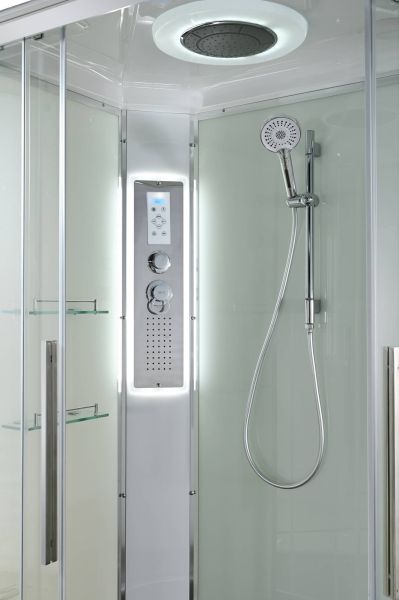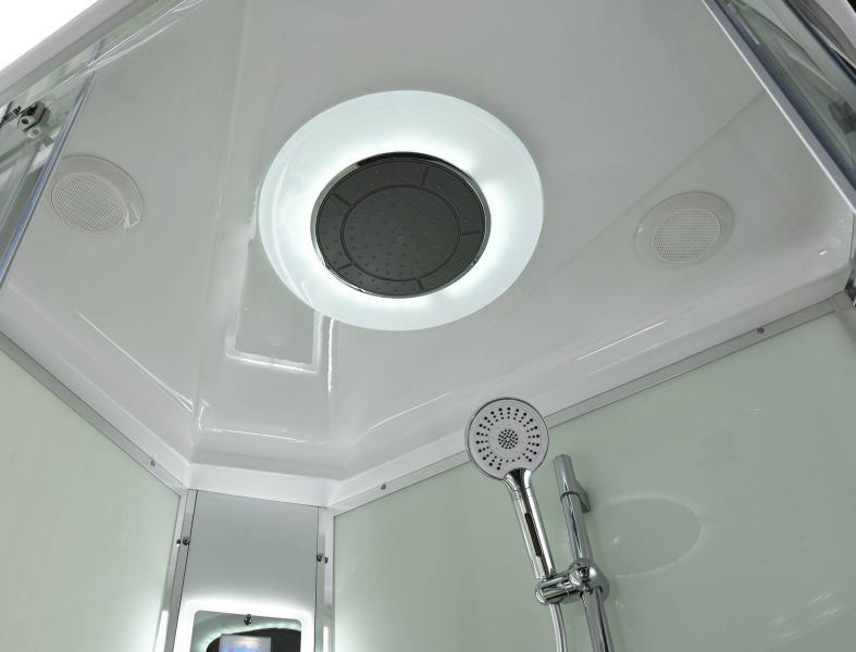 Стильная душевая кабина AvaCan EM2812LLEDT сочетает в себе высокую функциональность, практичность и надежность. При изготовлении применяется безопасное закаленное стекло толщиной 5 мм (прозрачное), надежно фиксируемое алюминиевым профилем. Сборка без силикона (увеличивает срок службы), внутренняя сборка(облегчает установку и ревизию; позволяет установить в ограниченном пространстве), смеситель резьбовой (без хомутов). Съемный экран поддона (позволяет осуществлять ревизию сифона). Цвет профиля  хром. Двойные металлические ролики дверей (увеличивают срок службы).В комплекте : душевая штанга, две полочки , тропический (верхний) душ, арома-лейка с витамином С (картридж съемный),полимерная вставка в поддон(имитация дерева),сифон, ручки дверей из нержавейки , двойные ролики ,пульт сенсорный(Блютуз ,LED подсветка ,радио ,вытяжка),гидромассаж спины.