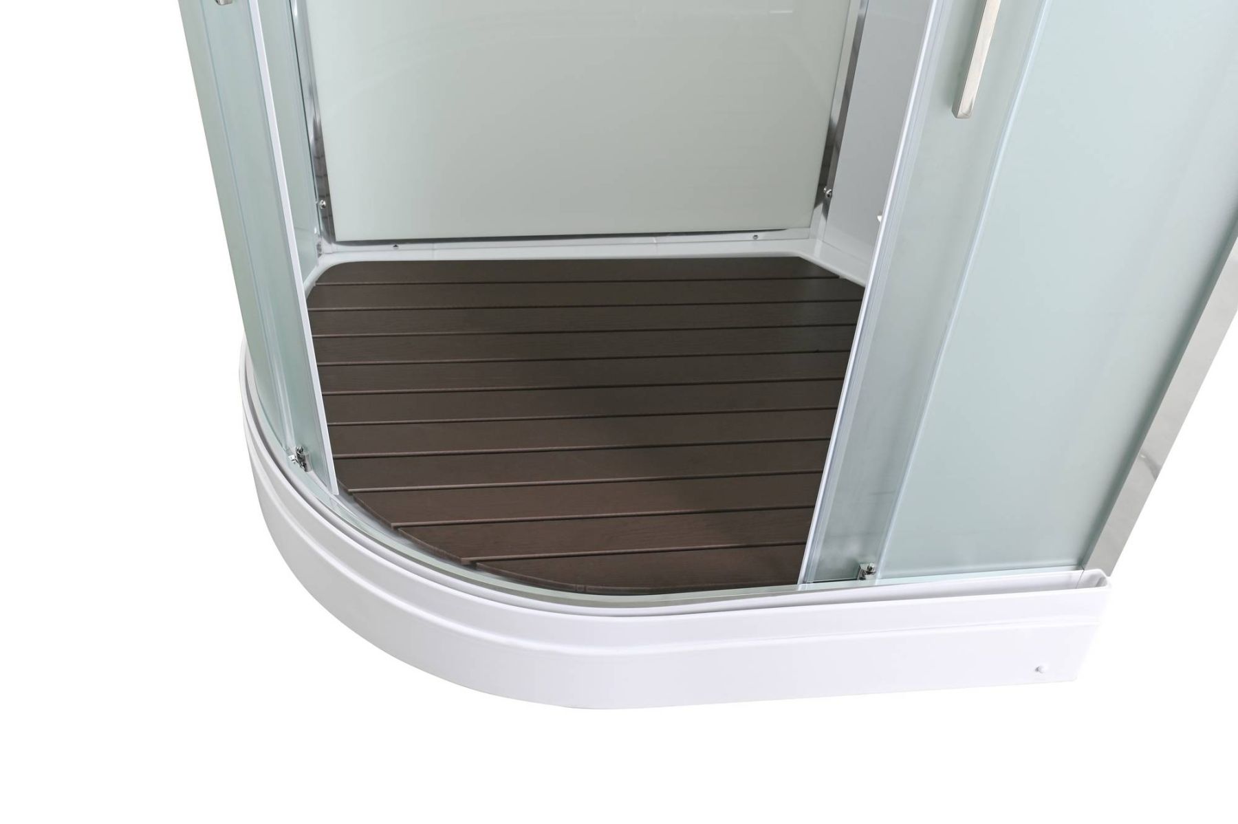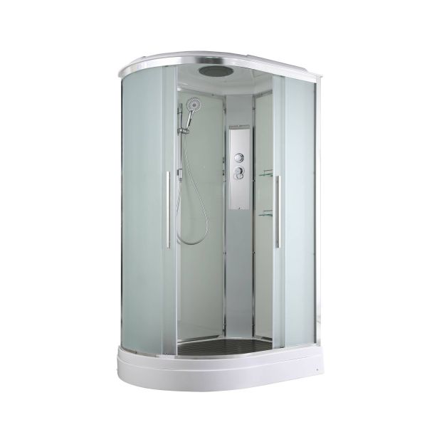 Стильная душевая кабина AvaCan EM2812R сочетает в себе высокую функциональность, практичность и надежность. При изготовлении применяется безопасное закаленное стекло толщиной 5 мм (матовое), надежно фиксируемое алюминиевым профилем. Сборка без силикона (увеличивает срок службы), внутренняя сборка(облегчает установку и ревизию; позволяет установить в ограниченном пространстве), смеситель резьбовой (без хомутов). Съемный экран поддона (позволяет осуществлять ревизию сифона). Цвет профиля  хром. Двойные металлические ролики дверей (увеличивают срок службы).В комплекте : душевая штанга, две полочки , тропический (верхний) душ, арома-лейка с витамином С (картридж съемный),полимерная вставка в поддон(имитация дерева),сифон, ручки дверей из нержавейки , двойные ролики .