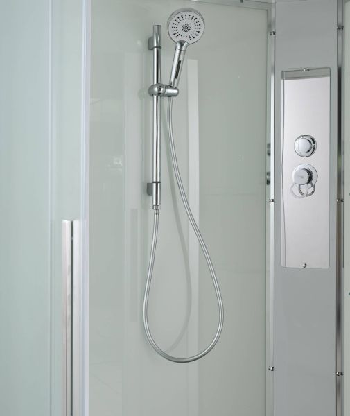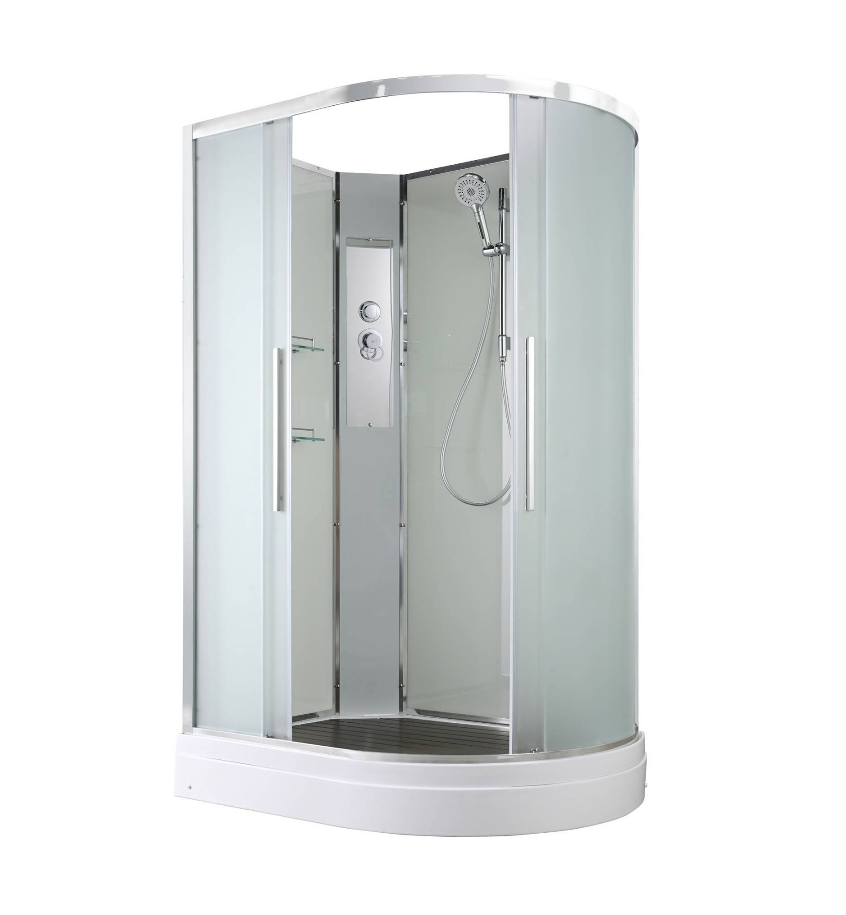 Стильная душевая кабина AvaCan EM2912LN сочетает в себе высокую функциональность, практичность и надежность. При изготовлении применяется безопасное закаленное стекло толщиной 5 мм (матовое), надежно фиксируемое алюминиевым профилем. Сборка без силикона (увеличивает срок службы), внутренняя сборка(облегчает установку и ревизию; позволяет установить в ограниченном пространстве), смеситель резьбовой (без хомутов). Съемный экран поддона (позволяет осуществлять ревизию сифона). Цвет профиля  хром. Двойные металлические ролики дверей (увеличивают срок службы).В комплекте : душевая штанга, две полочки , арома-лейка с витамином С (картридж съемный),полимерная вставка в поддон(имитация дерева),сифон, ручки дверей из нержавейки , двойные ролики .