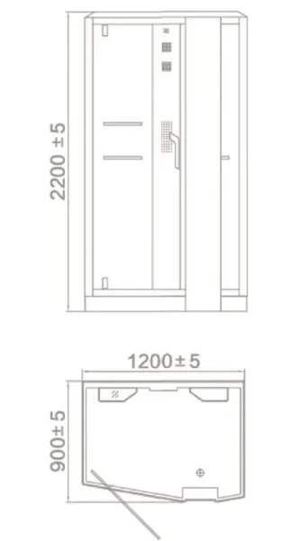 • Внешняя, электронная панель управления: включение душевой кабины, радио FM, полноформатная LED подсветка потолка, паровая сауна