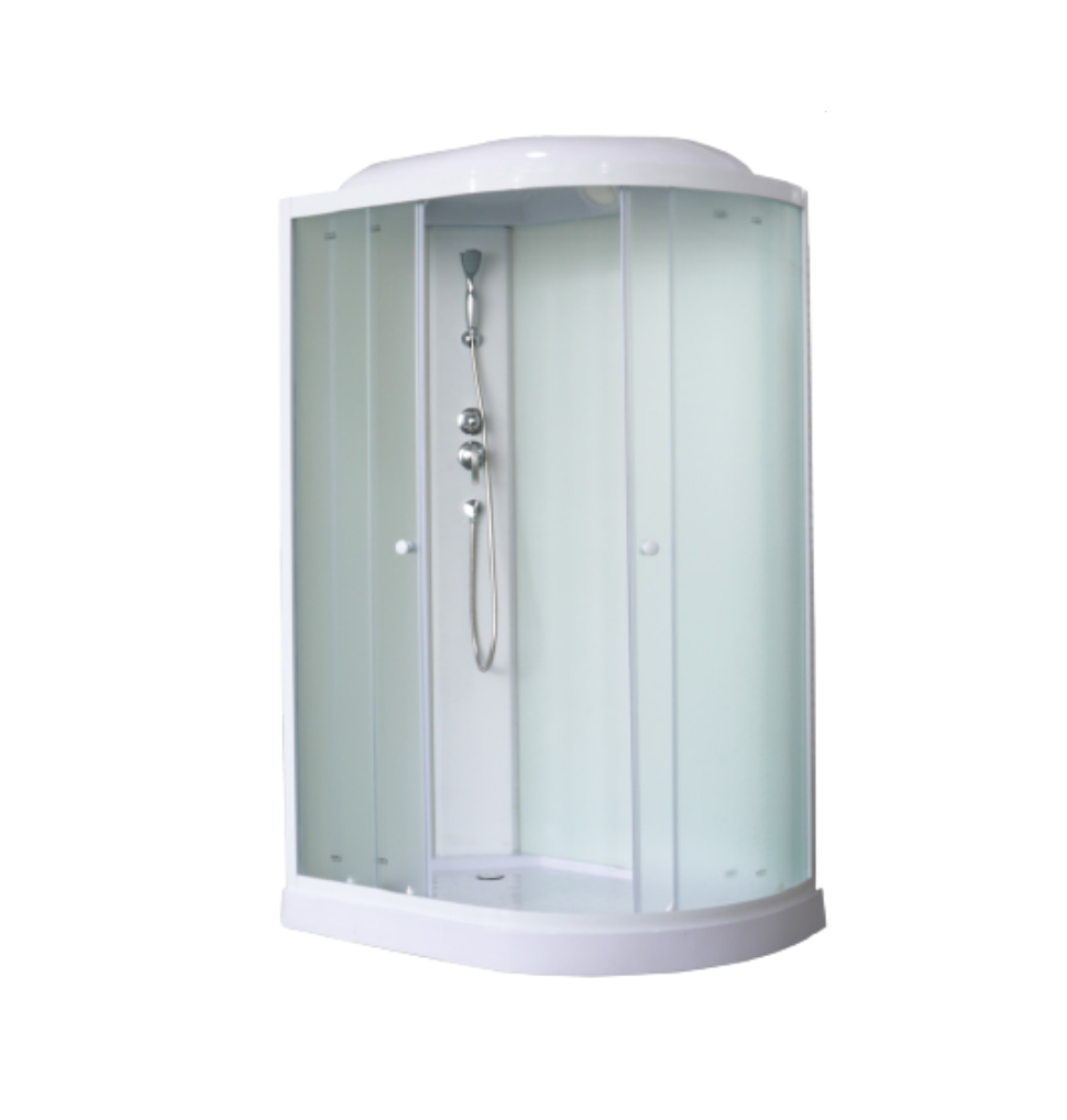 Душевая кабина EB123LРазмер: 120x80x210 смДостоинства:Стекло: закаленное, противоосколочное, ударопрочное, жемчужное, 4 мм.Стенки: закаленное, противоосколочное, ударопрочное, белое, 4 мм.Профиль: белый, алюминиевый.Центральная панель белая.Поддон: низкий, 10 см, асимметричный полукруглый. Материал - АБС пластик, армирован стекловолокном. Дополнительная ножка конструкции. Противоскользящее покрытие.Магнитные уплотнители двери под 45°.Силиконовые водоотсекатели.Белая одиночная ручка.Комплектация: смеситель, верхний душ ТРОПИК, ручной душ, сифон.Дверь левая, раздвижная на белых одиночных роликах. Нижние ролики на клипсе с механизмом отстегивания.Душевая кабина отлично подходит для дачи и квартиры.Преимущества модели: экономия пространства, безопасное стекло, плавное бесшумное открывание дверей, повышенная герметичность, легкий доступ к стеклу и профилю для очистки.Внимание! Производитель оставляет за собой право вносить изменения в конструкцию и комплектацию моделей без предварительного уведомления!