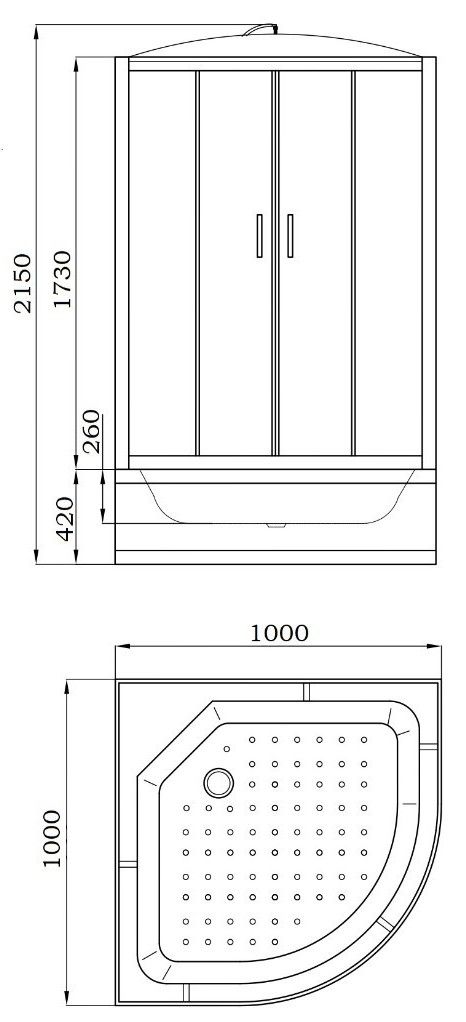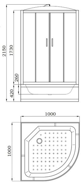 Поддон: высокий 42 см, полукруглый, рельефное дно, литое сиденье.