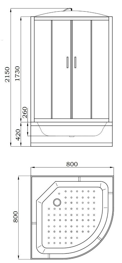 • Комплектация: верхний душ ТРОПИК, ручной душ, сифон. Магнитные уплотнители под 45° не позволяют теплу выходить из душевой кабины, защищают помещение от просачивания воды.
