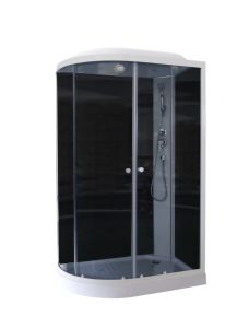 Кабина EC1231R душевая PARLY (9338)Размер: 120х80х210смПравосторонняя кабина с черными задними стенками смотрится стильно и лаконично впишется в современное оформление ванной комнаты.Достоинства:Стекло: тонированное закаленное, 4 ммСтенки: закаленное стекло чёрное, 4 ммПрофиль: белый, алюминиевый.Поддон: низкий 10 см, асимметричный.Комплектация: верхний душ ТРОПИК, ручной душ, сифон.Раздвижные двери плотно смыкаются за счет магнитной ленты, вода сквозь стыки не просачивается.Магнитные уплотнители под 45°; безболтовое соединение; дополнительные силиконовые уплотнители для задних стенок.