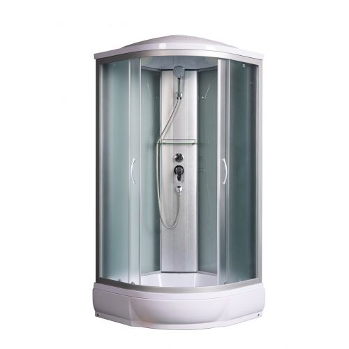 ~ крыша ~ верхний душ ~ вентиляц. отв-я (2шт) ~ цент. стойка ~ ручной душ 3-х позиц. ~ держатель д/лейки ~ полочка ~ смеситель с переключ. режимов ~ поддон п/кр низ.со/съемн экр.(Н=26см) ~cифон