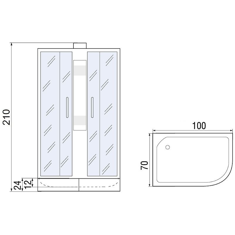 Душевая кабина River Nara 100x70 МТ L 10000008792 без гидромассажаДушевая кабина River Nara 100х70 10000008792. Характеристики: Цвет профиля: хром матовый. Материал профиля: алюминий. Исполнение полотна двери: матовое закаленное стекло толщиной 4 мм. Цвет задней стенки: белый. Материал задней стенки: закаленное стекло. Размеры (ШхВхД): 1000х2100х700 мм. Материал поддона: акрил. Высота поддона: 240 мм. Глубина поддона: 120 мм. Антискользящие покрытие. Регулируемая высота ножек. Тип поддона: низкий. Экран: съемный. Конструкция дверей: раздвижная. Количество дверей: 2. Вход: спереди. Монтаж: пристенный в угол. Сборка без силикона. Вентиляция. Полочка. Тропический (верхний) душ(с системой против известковых отложений). Держатель ручного душа. Шланг для душа. Ручной душ системой Easy Clean (легкое очищение). Количество режимов ручного душа: 3. Смеситель: стационарный. Водонепроницаемые уплотнители на неподвижных стеклах и стеклах раздвижных дверей. Регулировочный профиль, позволяющим компенсировать небольшие неровности стены. Хромированные кнопочные двойные металлические ролики. Сифон с гидрозатвором. В комплекте поставки: Душевая кабина
