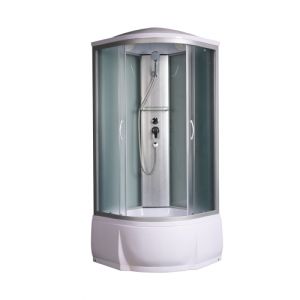 ~ крыша ~ верхний душ ~ вентиляц. отв-я (2шт) ~ цент. стойка ~ ручной душ 3-х позиц. ~ держатель д/лейки ~ полочка ~ смеситель с переключ. режимов ~ сиденье ~ поддон п/кр выс. со/съемн экр.(Н=46см) ~ сифон