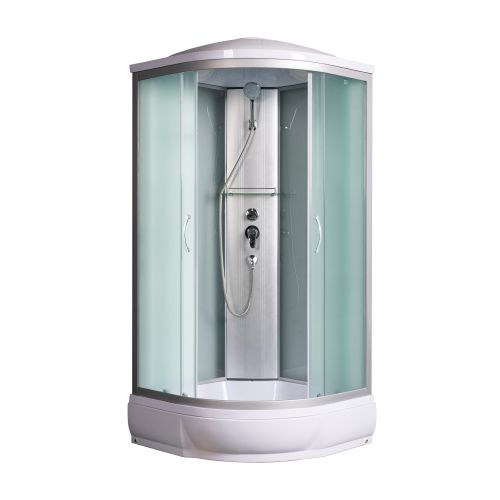 ~ крыша ~ верхний душ ~ вентиляц. отв-я (2шт) ~ цент. стойка ~ ручной душ 3-х позиц. ~ держатель д/лейки ~ полочка ~ смеситель с переключ. режимов ~ поддон п/кр низ.со/съемн экр.(Н=26см) ~cифон