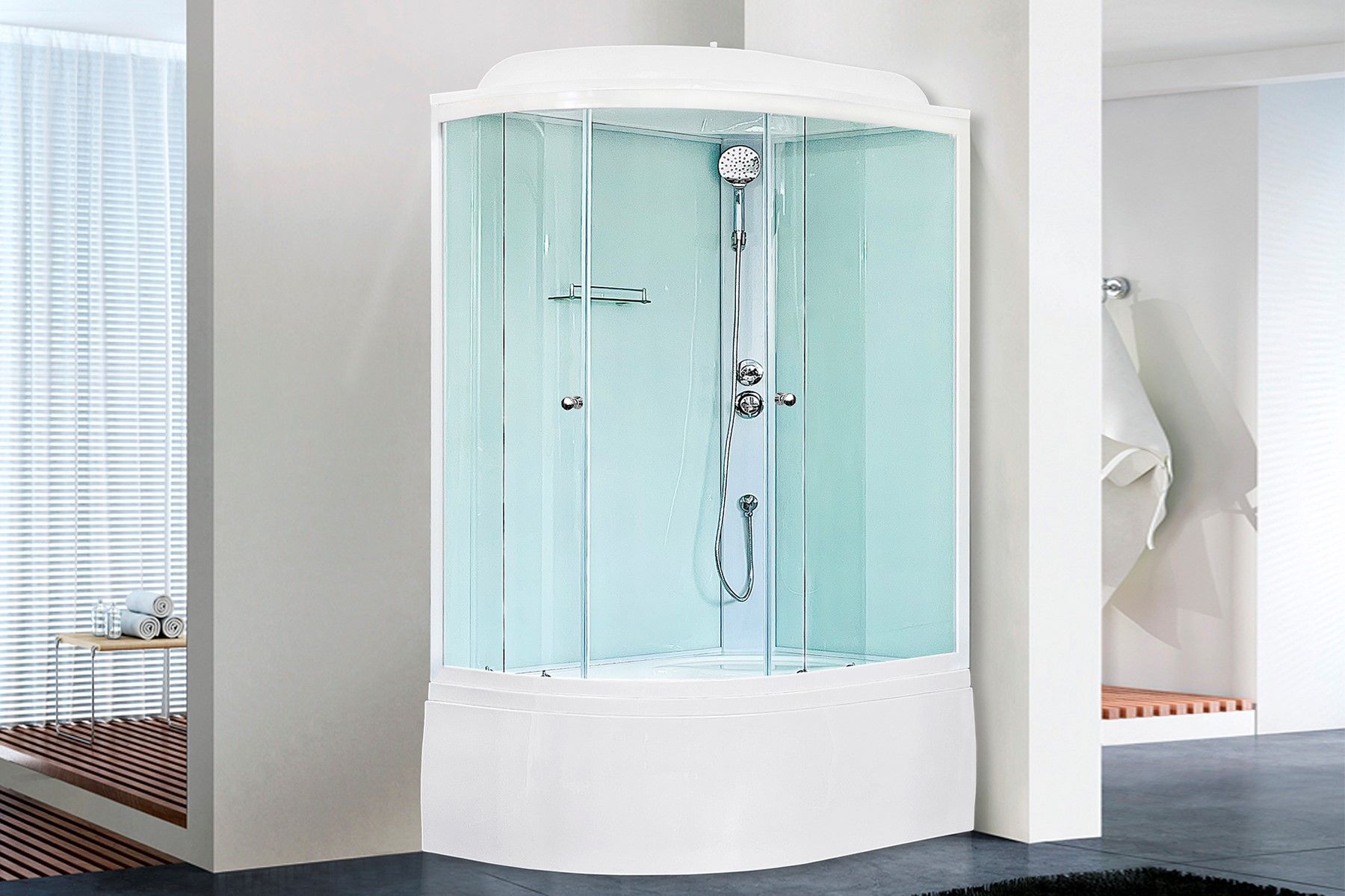 Душевая кабина Royal Bath подкупает своей универсальностью – поддон легко наполняется водой, превращаясь в небольшую ванну. Для каркаса используется усиленный профиль из алюминия толщиной 1,1 мм. Двери на подшипниковых роликах скользят плавно и бесшумно, открывая проход шириной 50 см.Душевая кабина Royal Bath это восхитительное решение для вашей ванной комнаты, которое поможет получить удовольствие от принятия душевых процедур. Душевую кабину просто установить даже в компактную ванную комнату, при этом она элегантно впишется в любое интерьерное решение.Кабина Royal Bath оптимальной формы, что сэкономит пространство для размещения других сантехнических предметов. Наличие крыши обеспечивает максимальную герметизации кабины, исключит излишнее попадание влаги на пол и стены. Глубокий акриловый поддон у Royal Bath можно использовать не только для купания, но и для стирки крупных вещей. Прозрачное исполнение передних стекол восхитительно подойдет в любой дизайнерский интерьер.Бренд Royal Bath, это Россия и все душевые кабины производятся по уникальным технологиям с применение качественных, безвредных материалов. Душевая кабина Royal Bath внесет неповторимый вклад в дизайн-проект любой ванной комнаты, и сделает его не только практичным в плане функций, но и стильным с точки зрения эстетики.