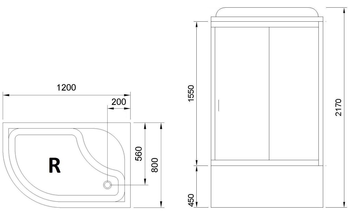 Душевая кабина Royal Bath BK правая стекло матовое 120x80см RB8120BK2-M-R