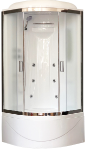 Душевая кабина RB 90BK2-M-СН сделает интерьер ванной комнаты уютным и функциональным. Матовые стеклянные двери для душа придадут великолепный вид и практичность, а также помогут сохранять приватную обстановку. Кабина оснащена гидромассажной системой из шести самоочищающихся форсунок. В основе конструкции лежит усиленный алюминиевый профиль который отвечает за прочность и устойчивость. Для приема душа предусмотрены две лейки (верхняя и ручная), полочка, где можно расставить средства гигиены, а также встроенное сиденье, которое поможет отдохнуть или с удобством провести необходимые гигиенические процедуры. Профили в цвете хром подчеркнут безупречный стиль.
