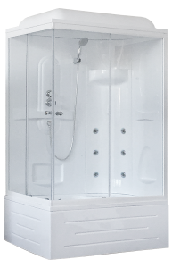 Душевая кабина 8100BP2-Т выглядит изысканно, так как отвечает потребительским запросам. Это изделие займет свободный уголок в помещении благодаря своим габаритам. Определяя место для модели в комнате, обратите внимание, что кабина правосторонняя. Кабина оснащена гидромассажной системой состоящей из шести форсунок, верхний душ с эффектом дождя снимет усталость. Также в кабине есть встроенное сиденье и полочка для средств гигиены. Прозрачные двери из стекла придают интерьеру ванной комнаты воздушность, легкость и простор.