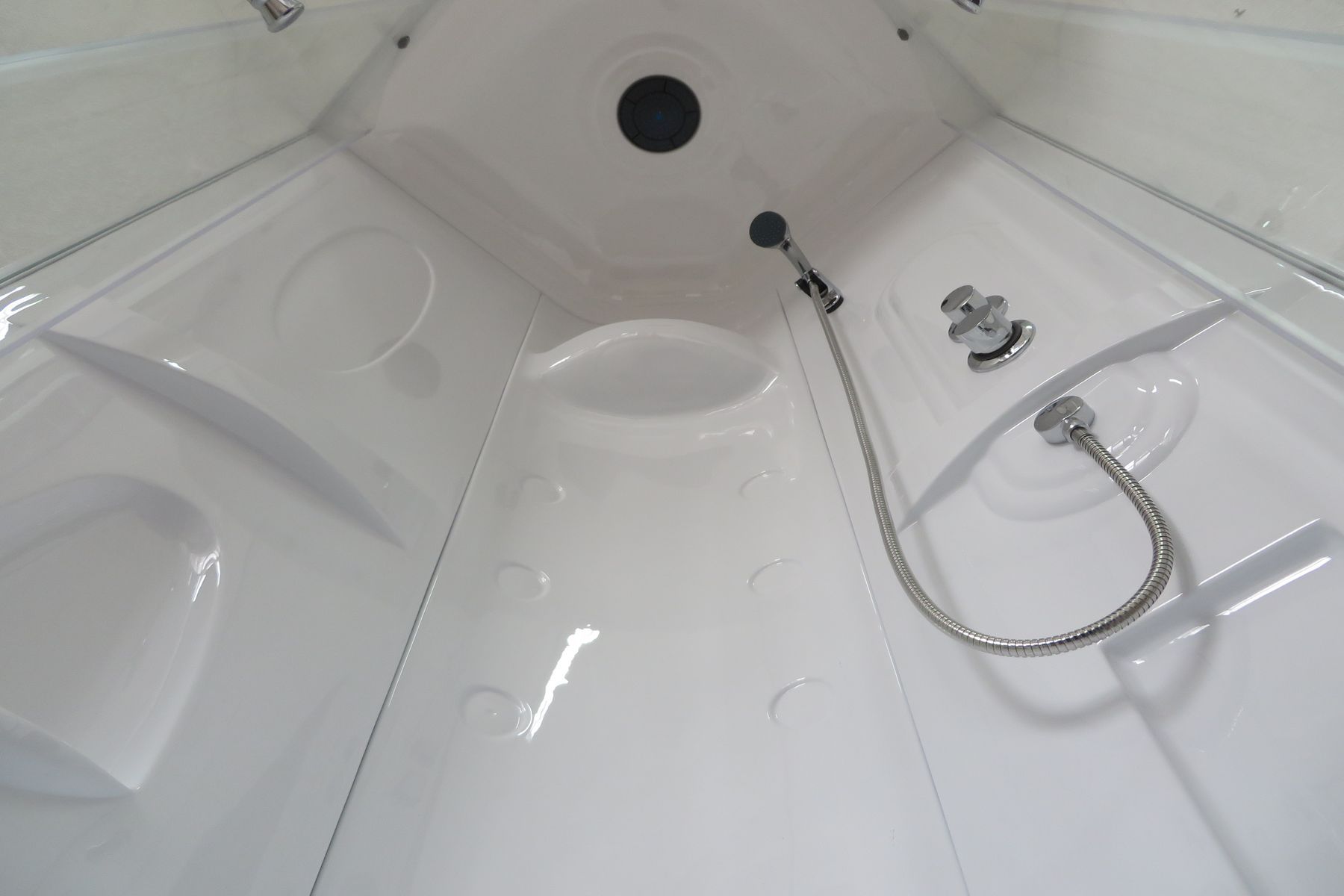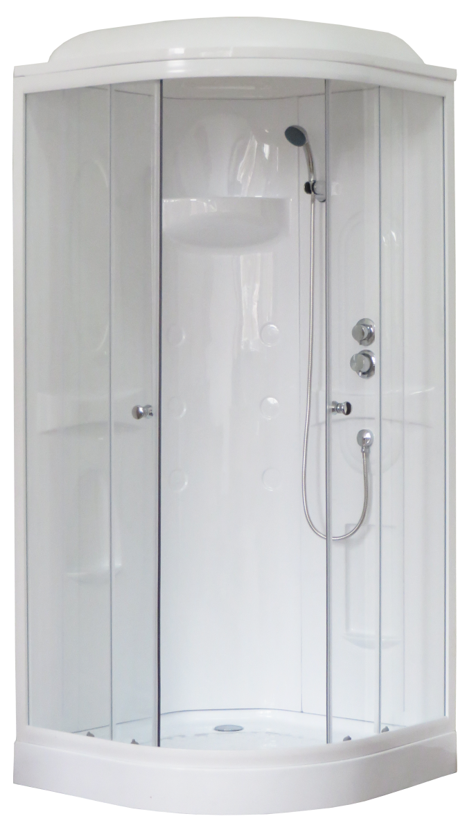 Душевая кабина RB 90HK1-T сделает ванную комнату визуально светлее и просторнее. Это достигается за счет белых элементов конструкции. Прозрачные двери из стекла придадут интерьеру ванной комнаты воздушность, легкость и простор. Тропический душ с мягким распылением расслабит и снимет усталость. Ручная лейка подойдет для быстрого приема душа. Акриловый поддон с антискользящим покрытием имеет оптимальную для входа высоту. Движение дверей по направляющим обеспечивают подшипниковые ролики.