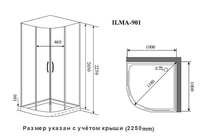 Душевая кабина Timo Premium Ilma Black 901 100 x 100 см, четверть круга, ILMA-901 BДушевая кабина
