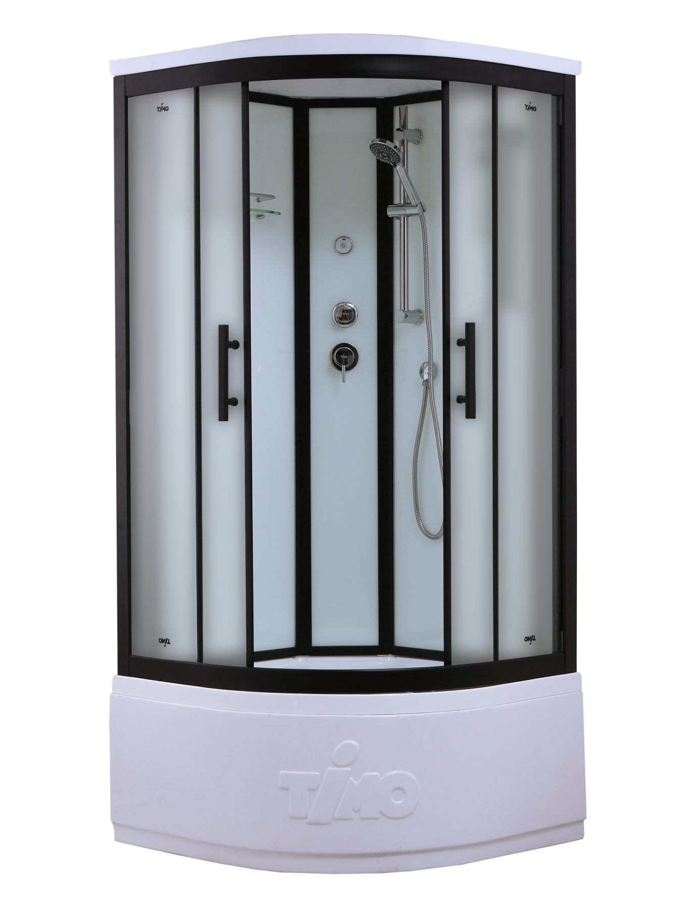 Душевой бокс Timo Standart T-6600BF, 100 x 100 см, c крышей, высокий поддон, стекла матовые, профиль черный