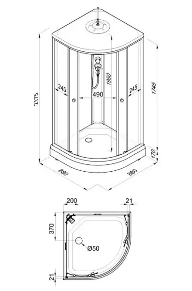 • Сифон душевой кабины: 50 мм