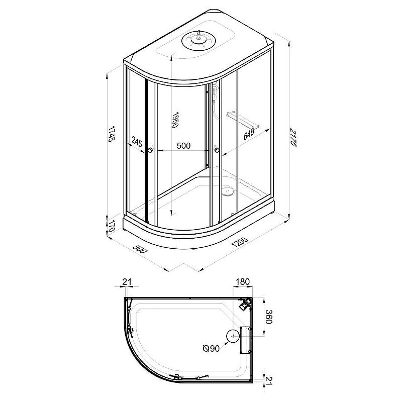 Душевая кабина с крышей, левая/правая ДК Коралл-Лайт 120*80 А, лев/прав, 6 мест+сифон D90 ... Подробнее